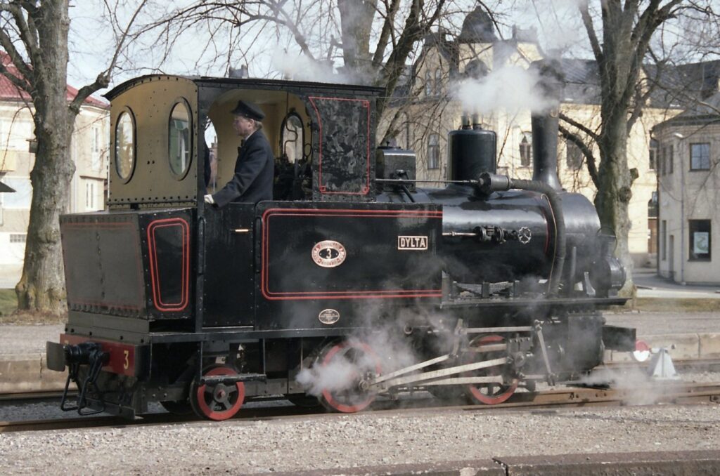 Dylta is a mid-size locomotive built for industrial use by Orenstein & Koppel some time during the first world war. It was used at lime kilns in Sala and in Jämtland county, and from 1946 at a factory in Dylta, Närke county. It was often decommissioned during the 1950s and was brought to ÖSlJs original location at Lina tegelbruk in 1960 where it faced frequent use. The boiler and firebox were overhauled in 1950. ÖSlJ lengthened the frame, added a rear trailer axle, and expanded the coal box.